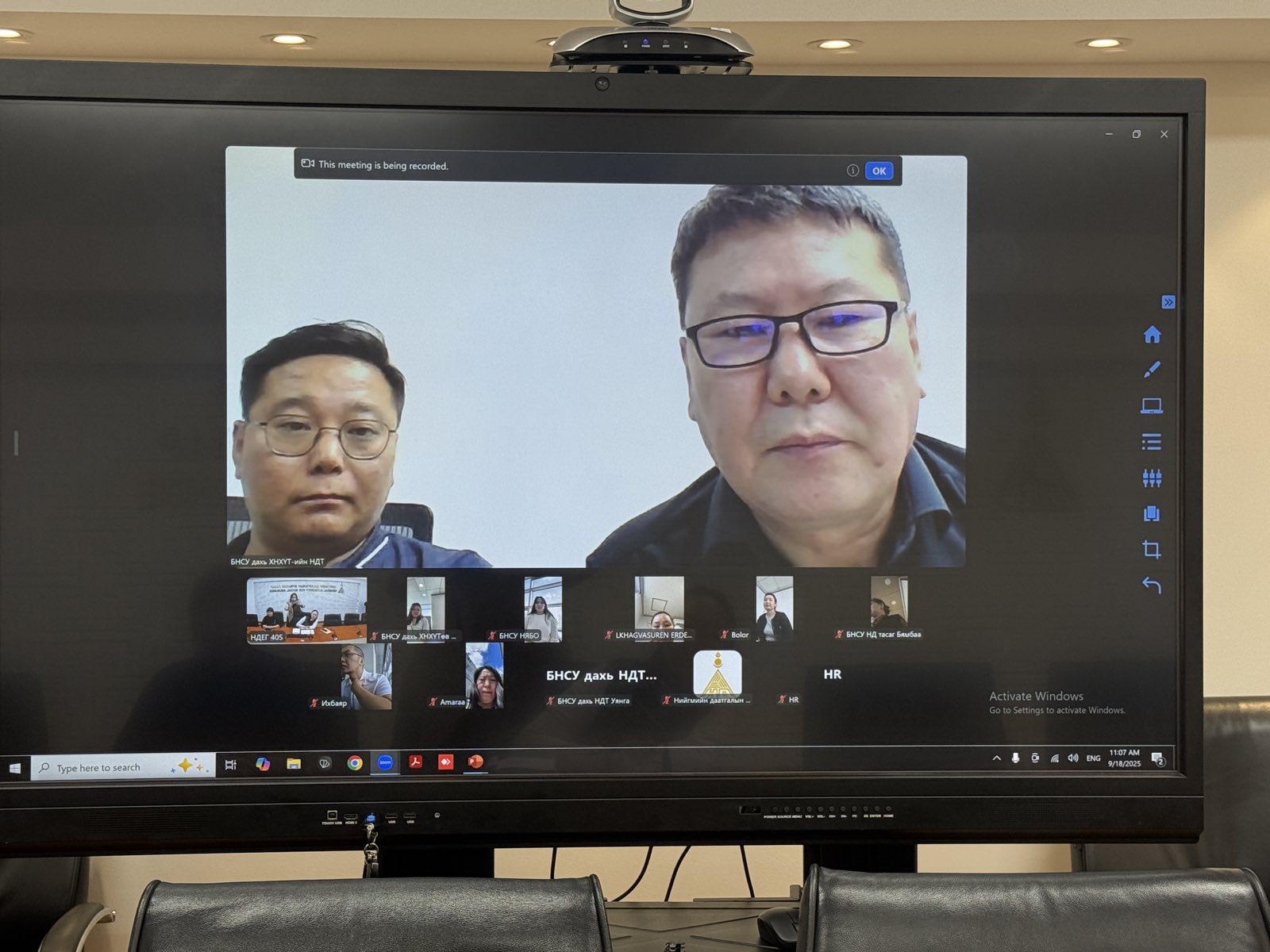 Нийгмийн даатгалын албан хаагчдыг чадавхжуулах ажлын хүрээнд нийгмийн даатгалын хууль тогтоомжийн талаар Бүгд найрамдах Солонгос улсын Хөдөлмөр нийгмийн хамгааллын үйлчилгээний төвийн албан хаагчдад 2025 оны 09 дугаар сарын 18-ны өдөр цахимаар сургалт зохион байгуулж, сургалтыг Бодлогын хэрэгжилт, төлөвлөлтийн газрын тэтгэврийн даатгалын бодлогын хэрэгжилт хариуцсан ахлах мэргэжилтэн М.Бямбадулам Сургалт хариуцсан мэргэжилтэн Б.Цэрэнчимэд нар орлоо.