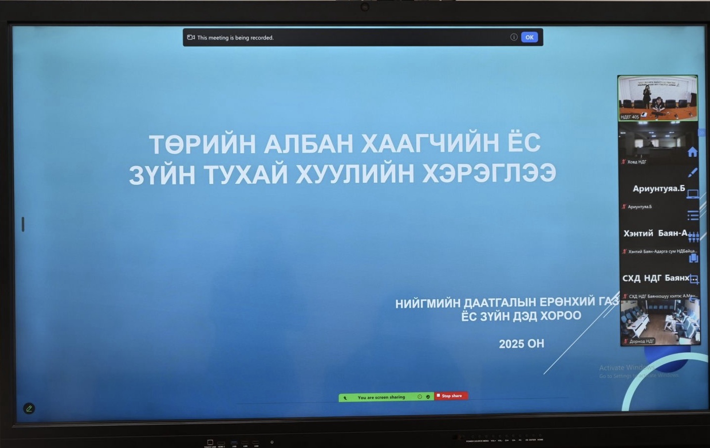 Нийгмийн даатгалын ерөнхий газрын Ёс зүйн дэд хорооноос 2025 оны 06, 07 дугаар саруудад “Төрийн албан хаагчийн ёс зүйн тухай хууль, түүний хэрэглээ” сэдэвт сургалтыг Нийгмийн даатгалын ерөнхий газрын болон аймаг, дүүргийн Нийгмийн датгалын газрын дарга нар, Ёс зүйн дэд хорооны гишүүд, бусад албан хаагчид гэж төрөлжүүлэн нийт 7 удаагийн сургалтыг зохион байгууллаа.