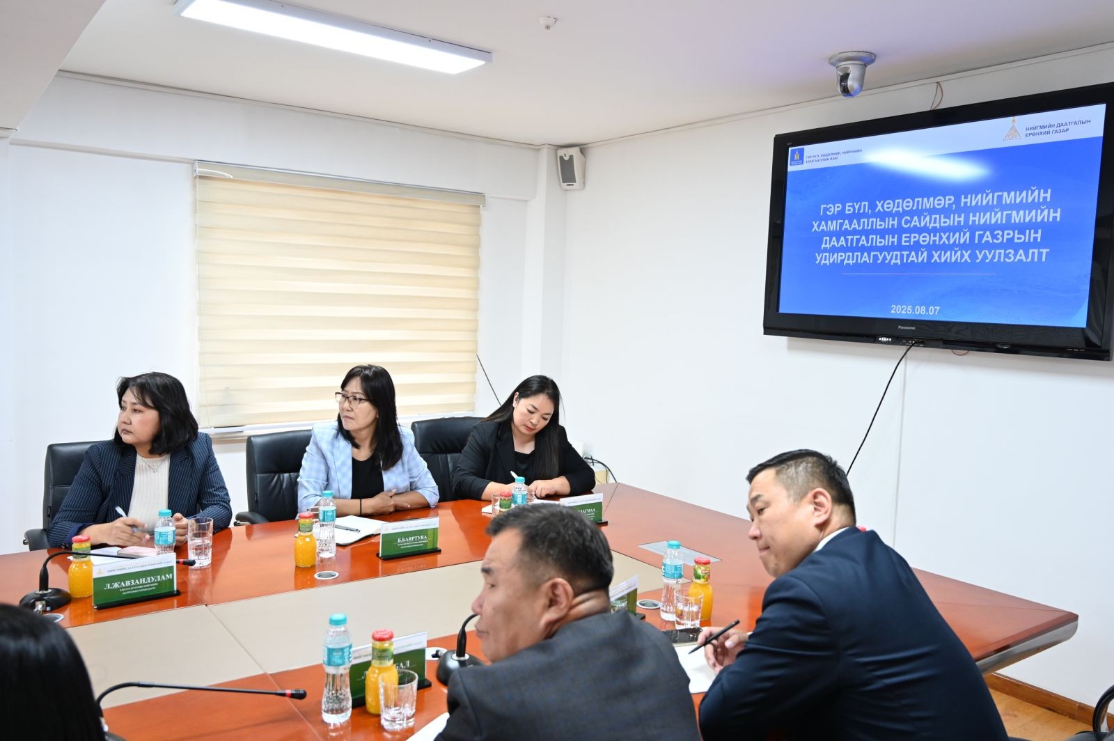 Гэр бүл, хөдөлмөр, нийгмийн хамгааллын сайд Т.Аубакир, ТНБД Л.Мөнхзул болон холбогдох албан тушаалтнууд Нийгмийн даатгалын ерөнхий газарт ажиллалаа.