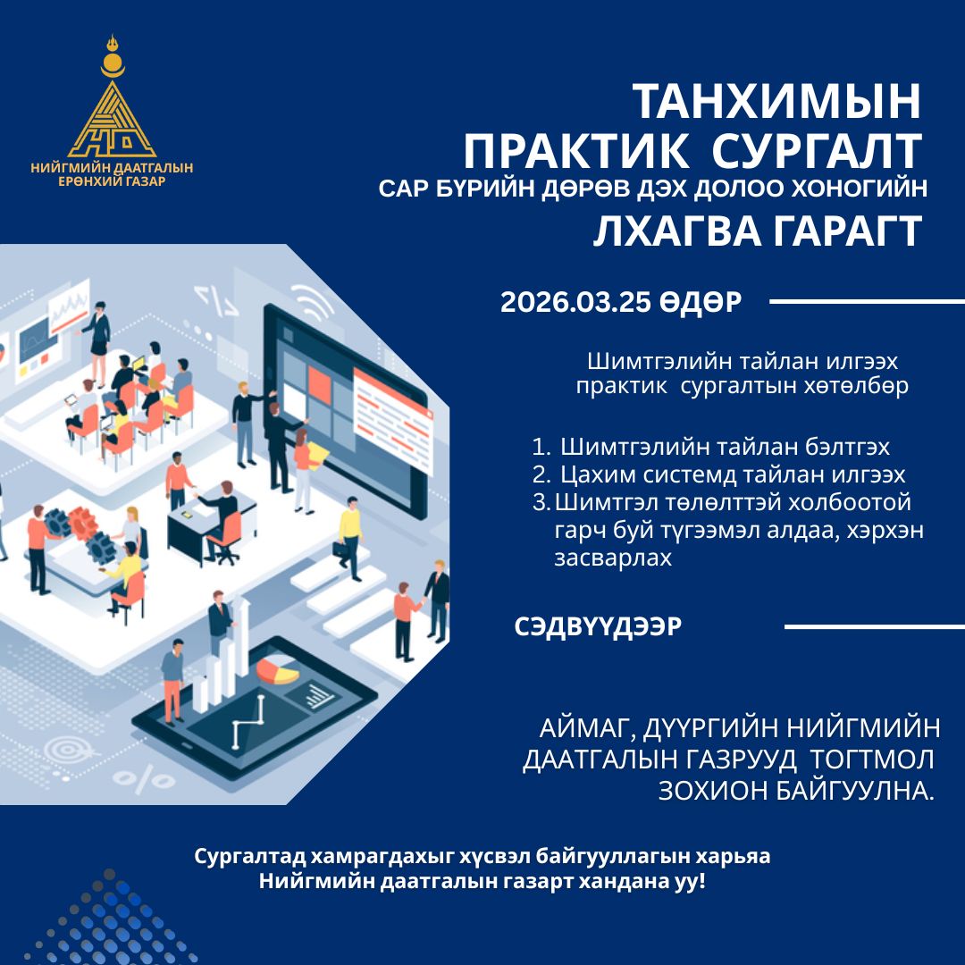 “ШИМТГЭЛИЙН ТАЙЛАН ИЛГЭЭХ ПРАКТИК СУРГАЛТ”-ЫГ ЗОХИОН БАЙГУУЛНА.