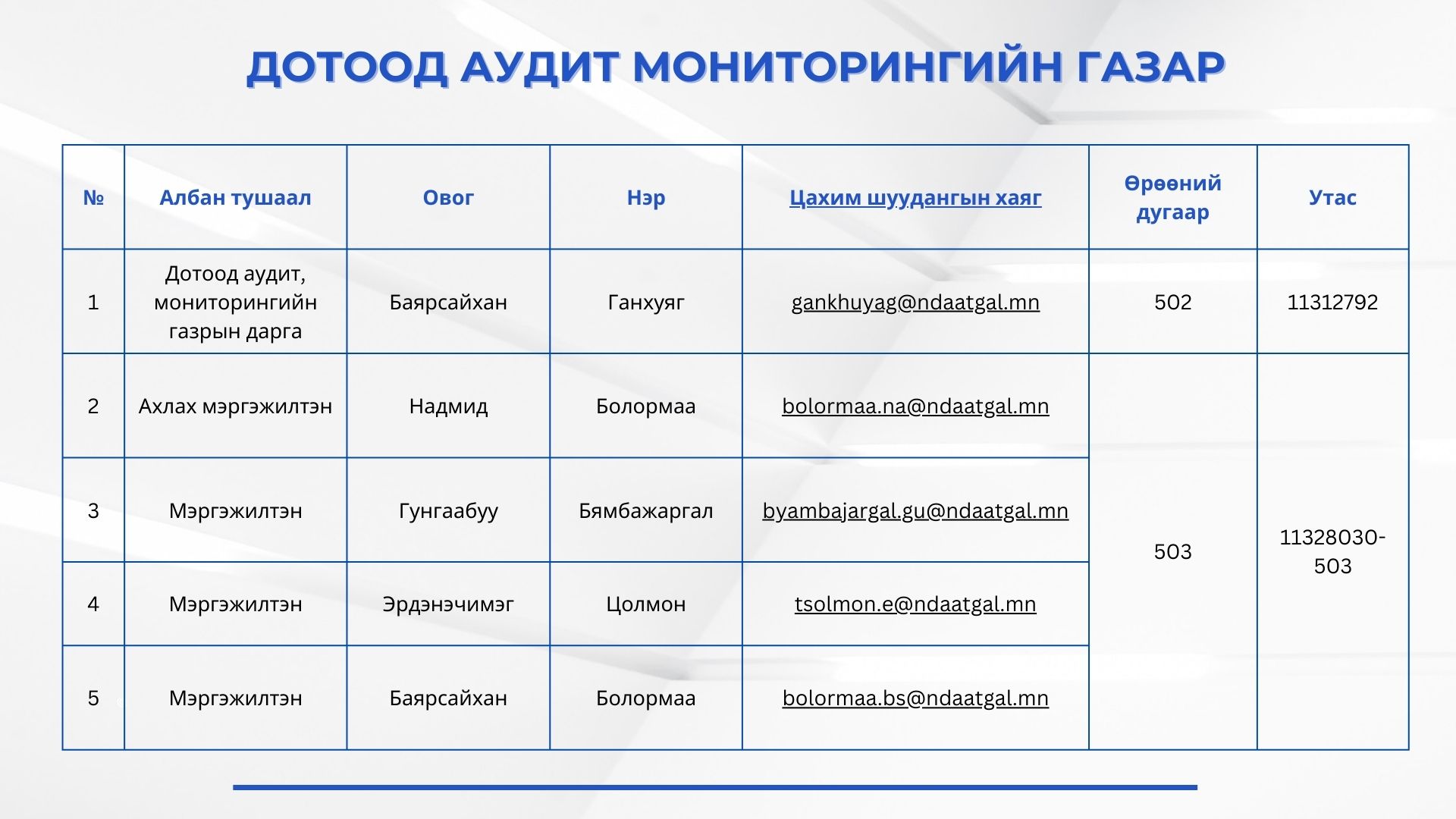 ДОТООД АУДИТ, МОНИТОРИНГИЙН ГАЗАР