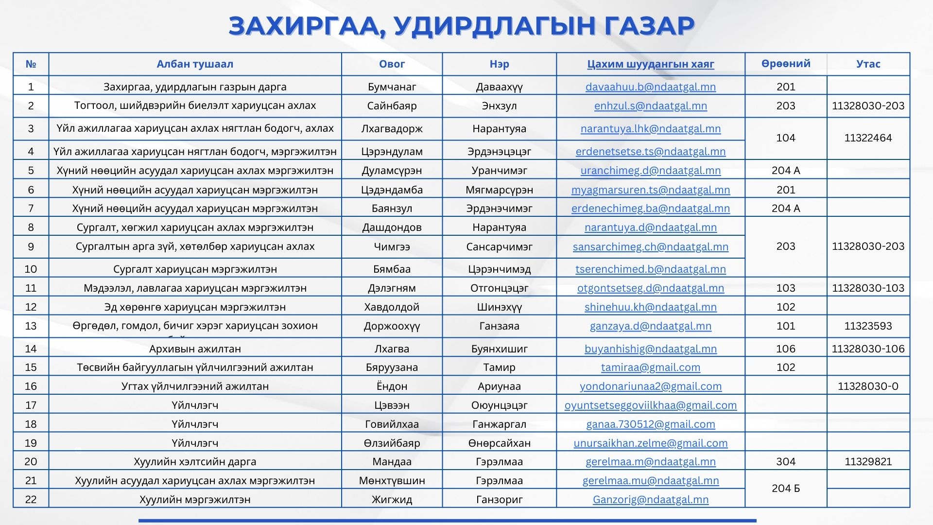 ЗАХИРГАА, УДИРДЛАГЫН ГАЗАР