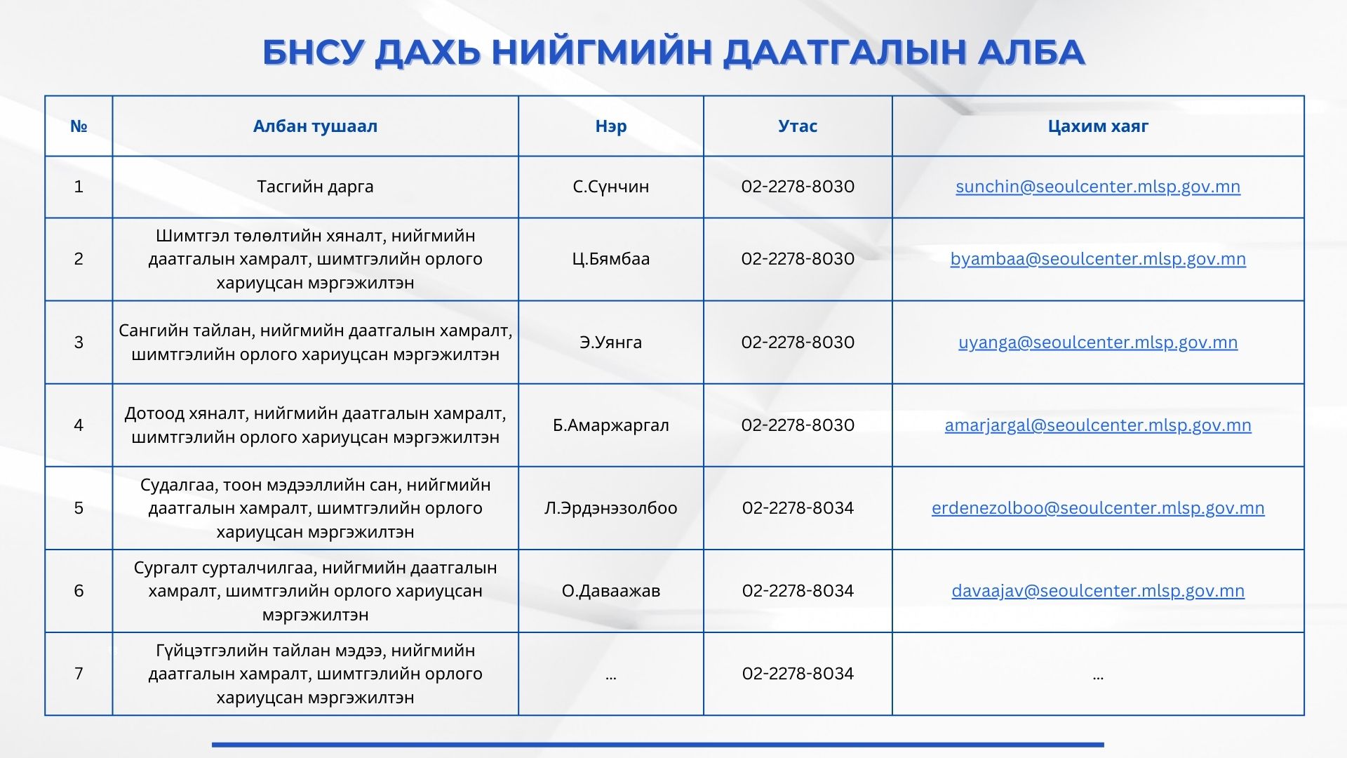 БНСУ ДАХЬ НИЙГМИЙН ДААТГАЛЫН АЛБА