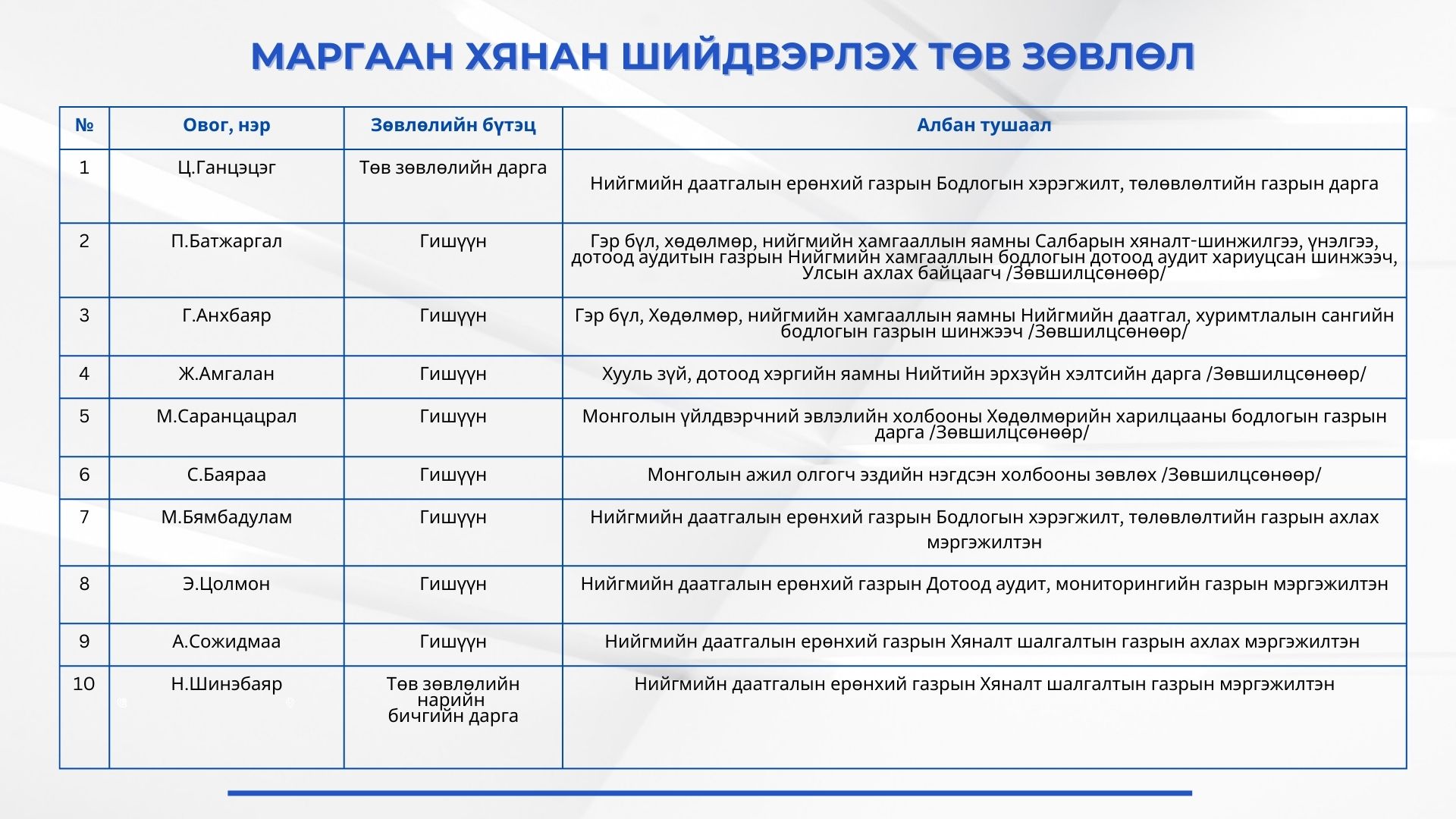 МАРГААН ХЯНАН ШИЙДВЭРЛЭХ ТӨВ ЗӨВЛӨЛ